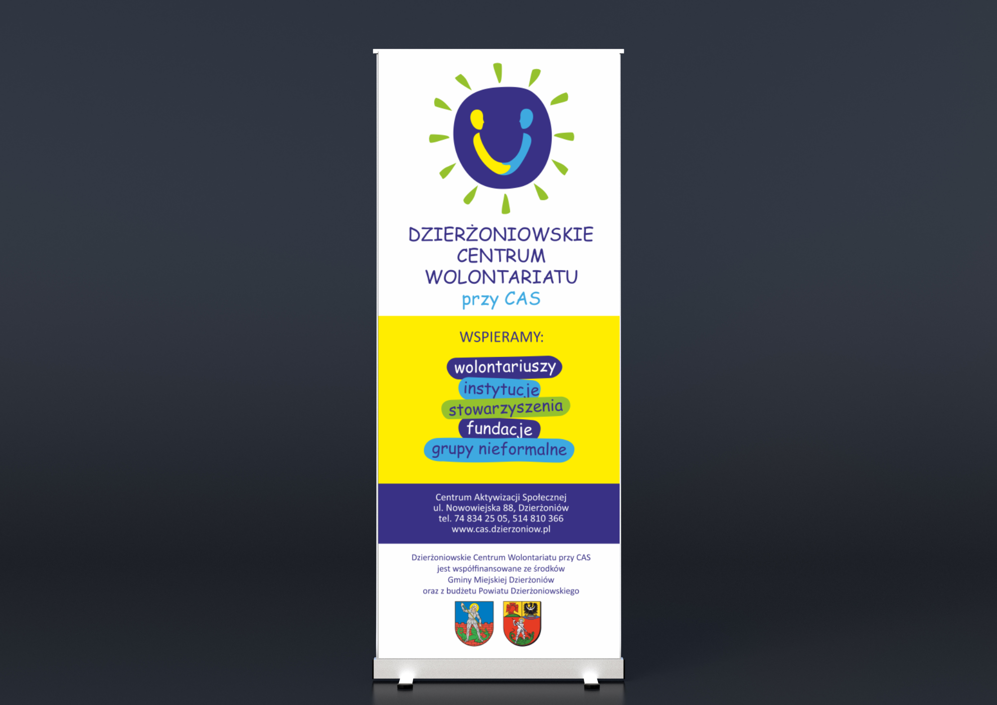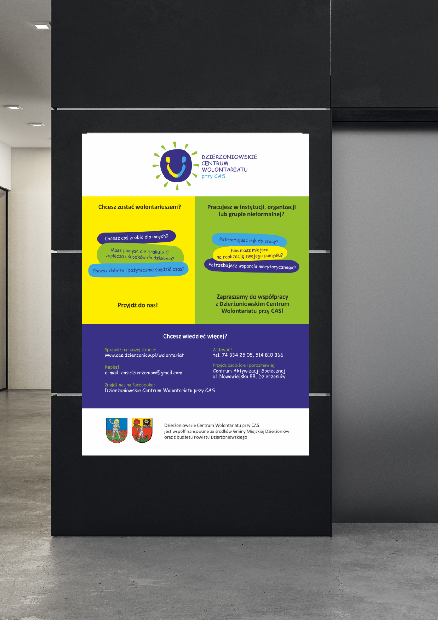 Materiały graficzne promujące Dzierżoniowskie Centrum Wolontariatu
