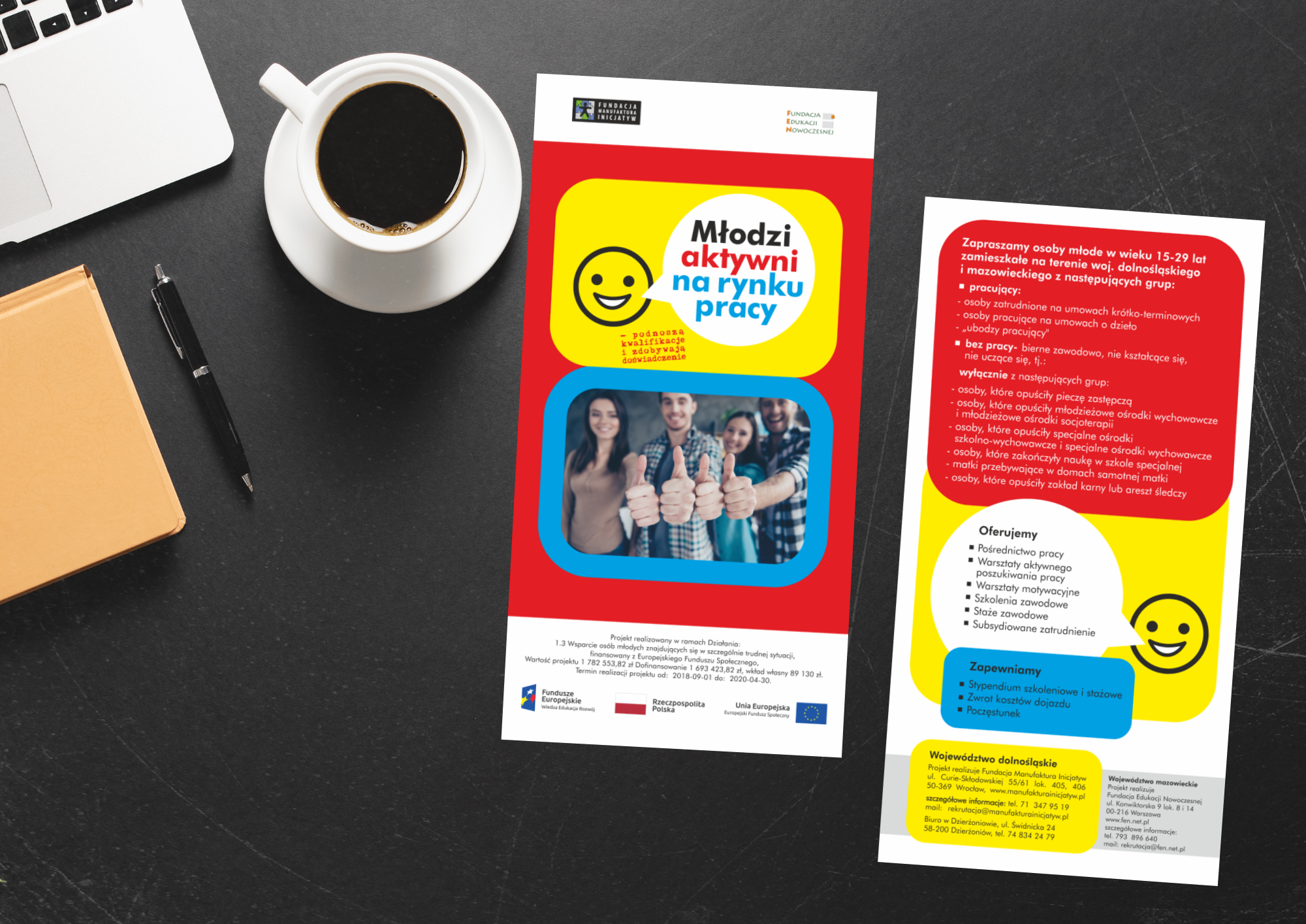 Materiały graficzne promujące projekt „Młodzi aktywni na rynku pracy”